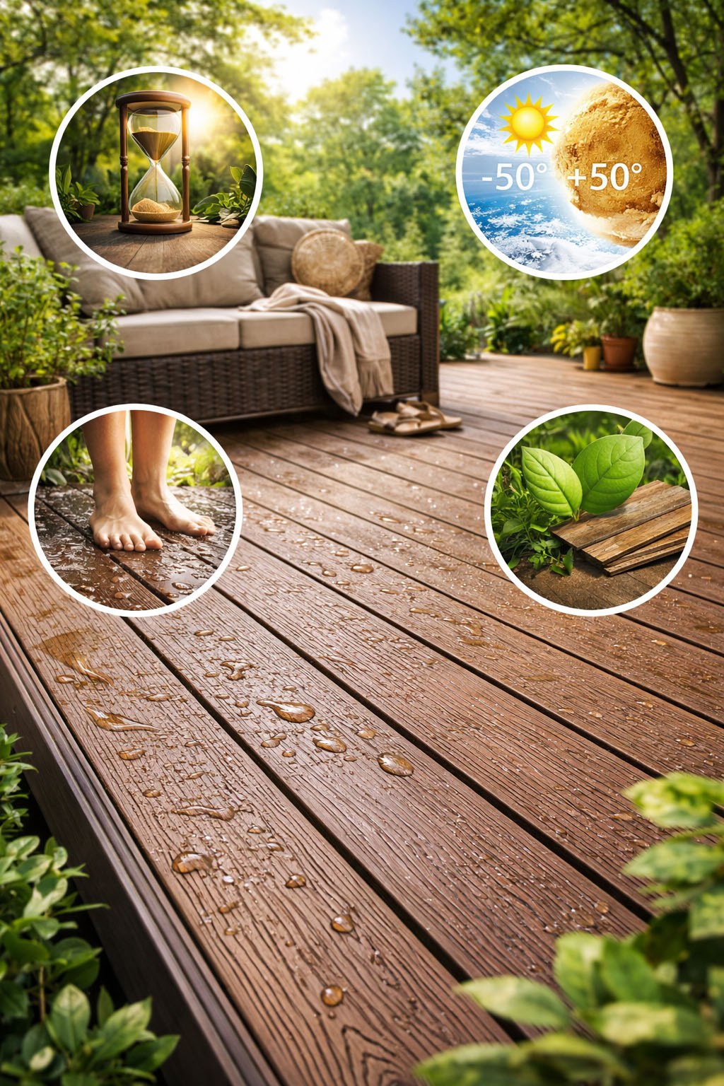 • Safety and comfort: anti-slip surface (non-slip even after rain) and splinter-free.